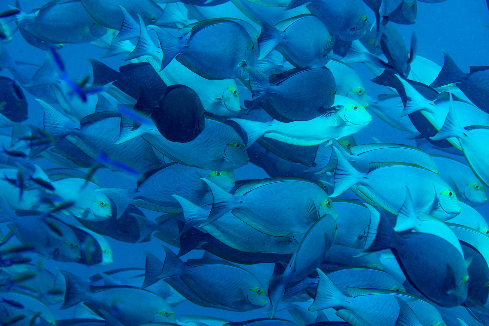 Then we all go down to the bottom and try to look small behind a little bit of coral rubble, while the Fijian dive masters feed the sharks.